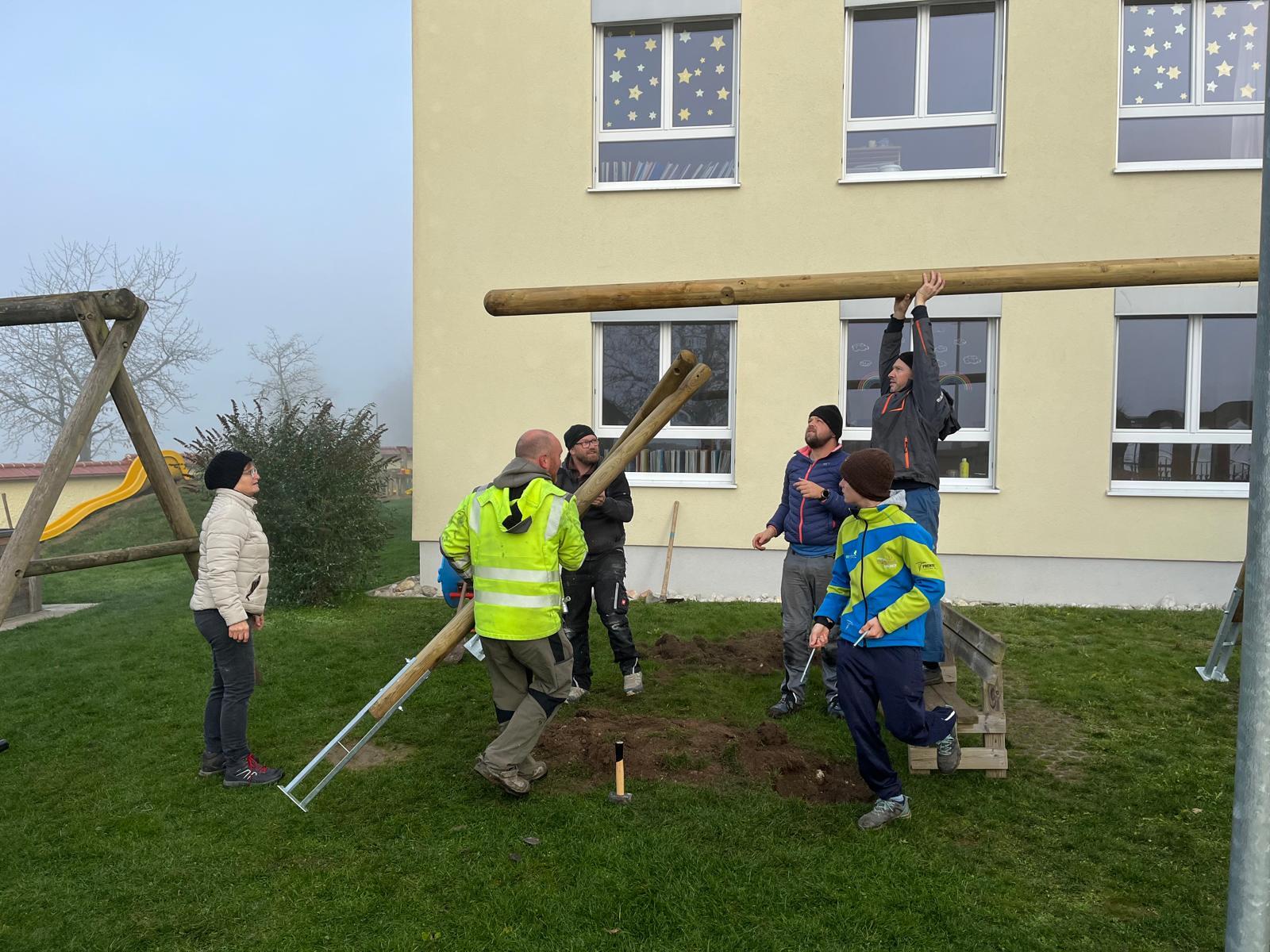 Schon seit der Errichtung der Kinderbetreuungseinrichtung in Kopfing in den 1970er Jahren engagieren sich viele Kopfinger für die Pfarrcaritas-Einrichtung. So auch diesmal, als die Spielgeräte im Garten instandgesetzt und repariert wurden.