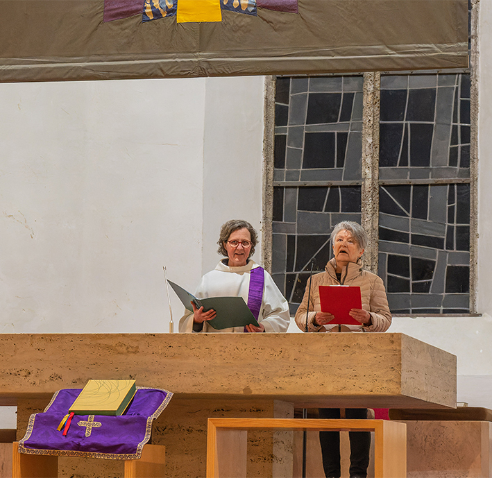 Die Wort-Gottes-Feier am Aschermittwoch, 22. Februar 2023 wurde durch Pastoralassistentin Susanne Lammer und Erni Stögmüller gestaltet. Durch sie erhielten die Mitfeiernden - als Symbol für die Bereitschaft zu Buße und Neubeginn - ein Aschekreuz auf die Stirn.