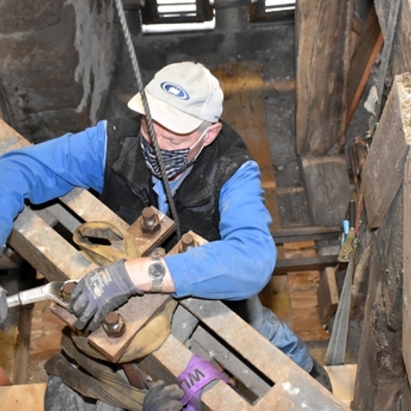 Für die Sanierung des Glockenstuhles mussten die Glocken abgenommen werden.