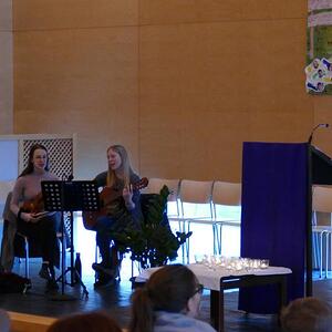 Sehr stimmig begleitet wurde die Vorstellungsmesse von Magdalena Winkler an der Gitarre und Teresa Alberer auf der Geige.