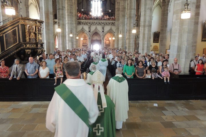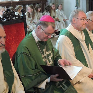 Bischof Manfred beginnt seine Predigt mit der Anrede an jene Menschen, die für die Kirche in Zukunft Bedeutung haben: