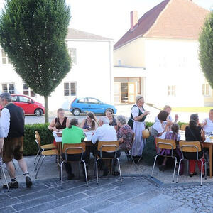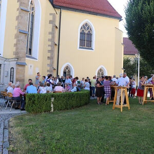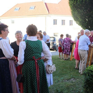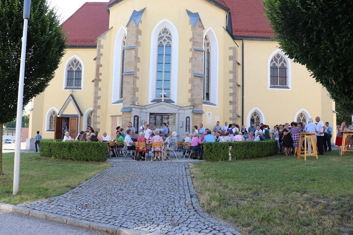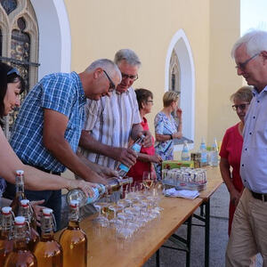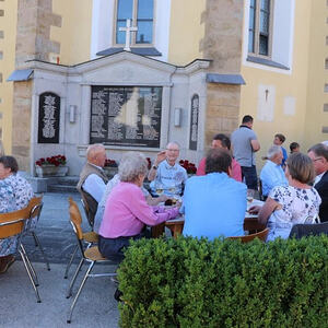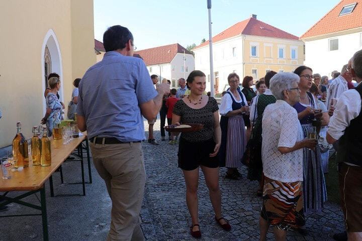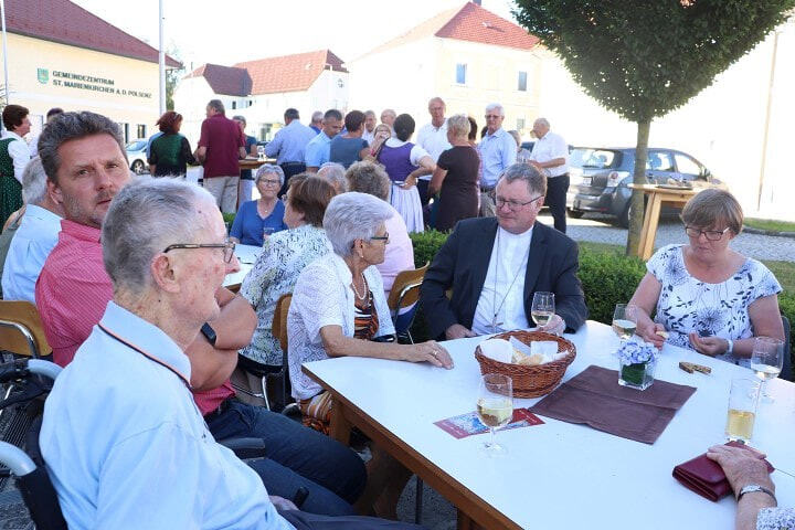 Nach dem Gottesdienst gibt es eine Bewirtung rund um die Kirche, der Bischof nimmt sich noch lange Zeit für Menschen, die gekommen waren.