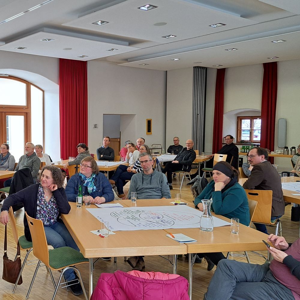 Gut 60 Personen sind der Einladung gefolgt um bei der Visionsklausur im Pfarrheim Grünau dabei zu sein.